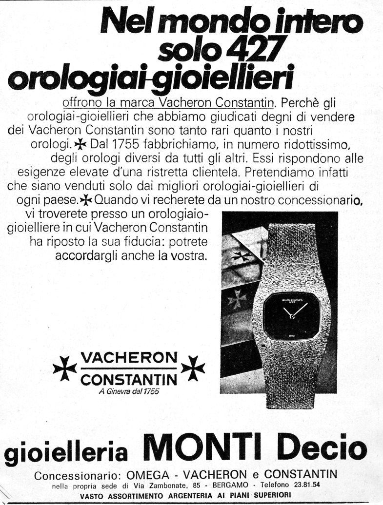 Negli anni Sessanta la già ampia produzione di gioielli e orologi firmati Monti Decio 1912 è affiancata dalle migliori firme della gioielleria mondiale. Nei primi anni Settanta l’azienda si sposta dalla storica sede al civico 79, luogo oggi del negozio di rara e ricercata gioielleria etnica, all’attuale civico 85. Tre piani di esposizione dei migliori articoli di orologeria, gioielleria ed oreficeria internazionale.